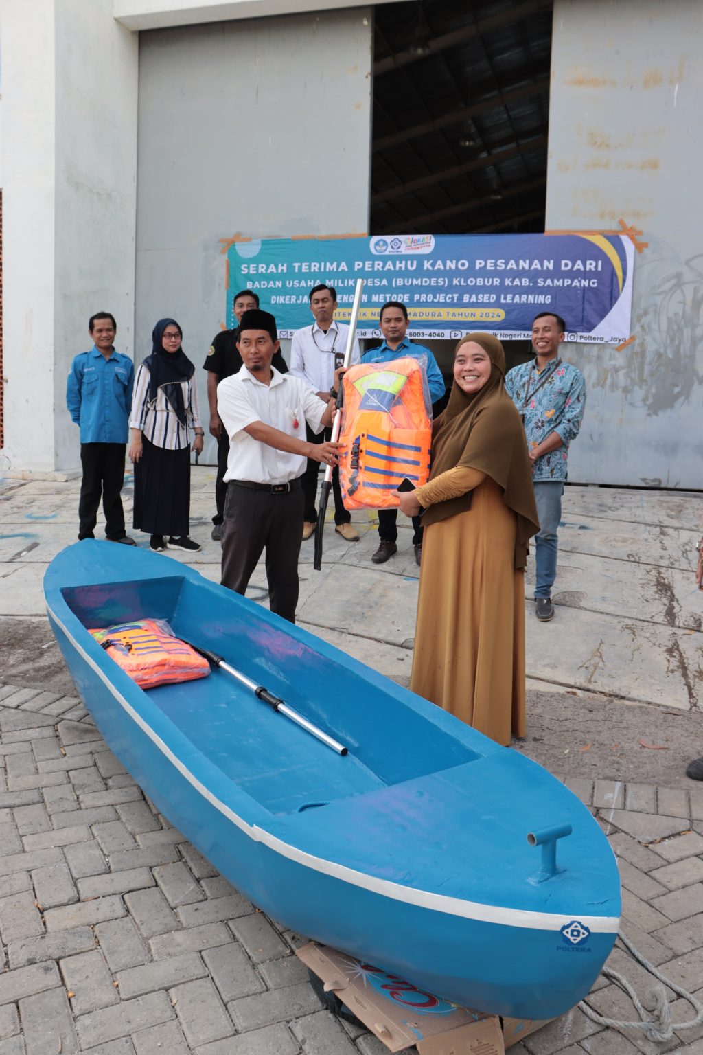 Adapun serah terima Perahu Kano dari Poltera kepada BUMDes Harapan Jaya dilakukan secara langsung oleh Direktur Politeknik Negeri Madura (POLTERA) Laily Ulfiyah, M.T Kepada Moh. Ridla’i selaku Direktur BUMDes Harapan Jaya.